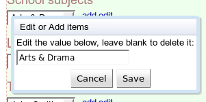 And this is really all there is to the UI element, as far as the AddEditListBox goes — next is the DialogAddEdit component, that gets created in response to the user clicking either of the add / edit anchors, and will display either of the two popups shown earlier: