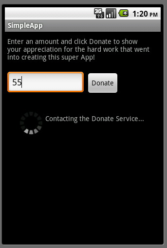 [*]A note about re-using common strings (see the file res/values/donate_service_strings.xml): it is good practice not to use hard-coded strings in your service calls and data maps, and even better to have them in a commonly shared file (instead of duplicated everywhere in each applications strings.xml file).