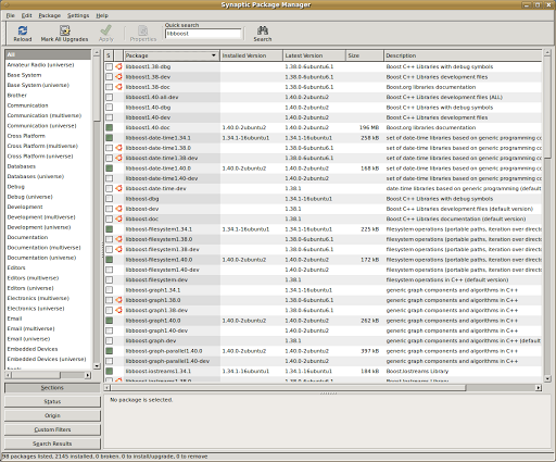 Given that there are in total 24 files for the whole of Boost 1.40, I’ve done a bit of find & replace magic, and have come up with the following shell file (the other advantage being that, when a later version becomes available for Ubuntu, I will not have to change any of my Eclipse projects setting, but just change the VERSION value in the script):