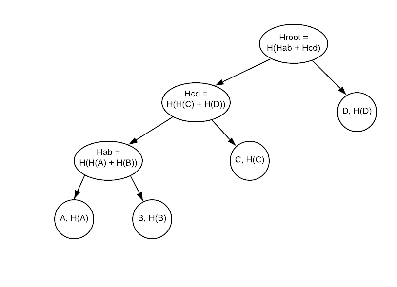 As mentioned, Merkle trees are used in the Blockchain and are described in greater detail in Mastering bitcoin (Chapter 7, “Merkle Trees”).